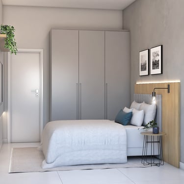 Esquadrias com perfil em alumínio e persiana integrada nos quartos;